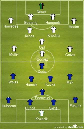 Their only competitive meeting before today’s game came in the qualifying for Euro 2008, when Lukas Podolski and Bastian Schweinsteiger found the back of the net in the 4-1 win in Bratislava.