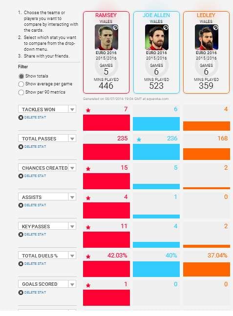 Here is a comparison of the Welsh midfielders at Euro 2016.