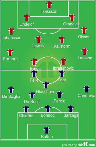 Allowing little space and limiting the movement of Candreva has to be the key to containing Italy's main creative threat. Swedes will look to sit back and absorb the pressure and then hit Italy on the counter. Their talisman and all-time top scorer Zlatan Ibrahimovic, who played a big role in their 1-1 draw against Ireland will once again be at the centre of attention at the Stadium Municipal.