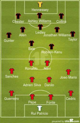 Portugal (4-4-2): Rui Patricio; Cedric, Fonte, Pepe, Guerreiro; Danilo, Joao Mario, Adrien Silva, Sanches; Nani, Ronaldo.