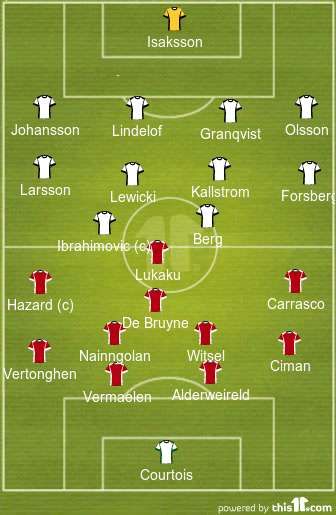 Mikael Lustig will be missed by Sweden as their regular right back has a groin strain. John Guidetti’s poor form will probably mean he will start on the bench again. Vertonghen and Vermaelen of Belgium are expected to start despite being a booking away from a suspension.