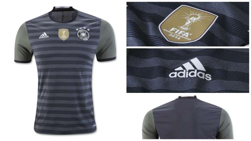 The current world champions, Germany will be flaunting a grey/black away kit as they look to stamp their authority on the 2016 edition of the Euros. The German away kit showcases a number of stripes at the frontal side in a couple of shades of grey along with a crest which says, ‘FIFA World Champions: 2014’.