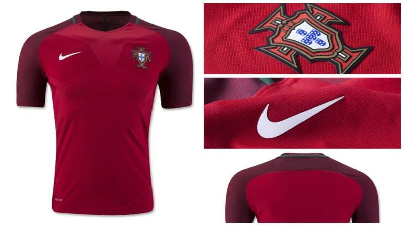 There is also a green stripe which runs around its collar area. The logo of its manufacturer, Nike along with that of the Portuguese Football Federation is present at the front of the jersey.