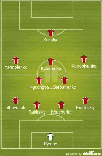 Ukraine (4-2-3-1): Pyatov, Fedetskiy, Khacheridi, Rakitskiy, Shevchuk, Ngcongca, Stepanenko, Yarmolenko, Kovalenko, Konoplyanka, Zozulya.