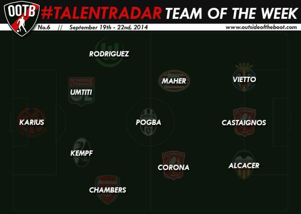 Luciano Vietto | Villarreal | Argentina | 20 | Striker: Villarreal were two goals down early on but found themselves level just after Vietto was brought on at the hour mark. He then helped complete the comeback in supreme fashion. As he made a run into the box, Denis Cheryshev played a low cross towards him that was just behind the Argentine, but he superbly finished it off. That same man set-up Vietto for another three minutes from time. This one being more perfect and right onto Vietto pass for a 4-2 victory. Two goals after being on the field for just over 30 minutes.