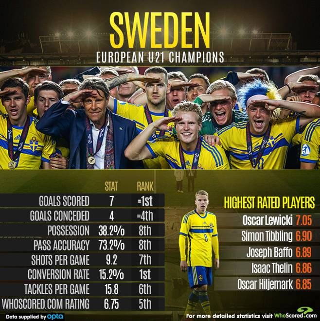 Perhaps that actually gives you an indication as to Sweden’s performance over the course of the tournament. Not to take anything away from their achievement or to suggest they were unworthy of their first European Under-21 Championship, but the statistics reveal they certainly did not blow away their competition.
