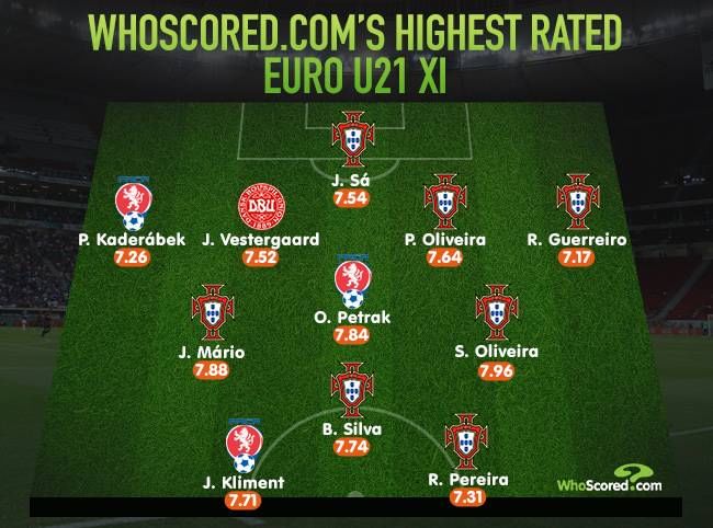 Elsewhere in the XI, Czech Republic striker and tournament top goalscorer Jan Kliment (3) partners Portugal forward Pereira up front, with his international teammates Pavel Kaderábek and Ondrej Petrak breaking up Portugal’s dominance at right-back and defensive midfield, respectively. Denmark’s Jannik Vestergaard completes the XI alongside Paulo Oliveria at the heart of the defence.