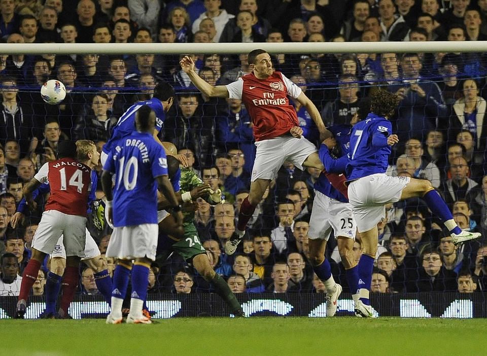 Everton went with Cahill and Jelavic up front, behind a midfield four of Fellaini, Drenthe, Osman and Pienaar. Their left flank of Baines and Pienaar squared up against Arsenal’s right flank of Walcott and Sagna, which was set to be an intriguing face-off.