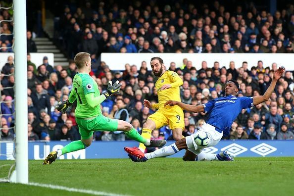 Gonzalo Higuain and Pedro both squandered promising chances, while Eden Hazard hit the post and the hosts had goalkeeper Jordan Pickford to thank for keeping the scores level at half-time with some important saves too.