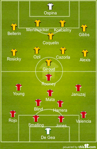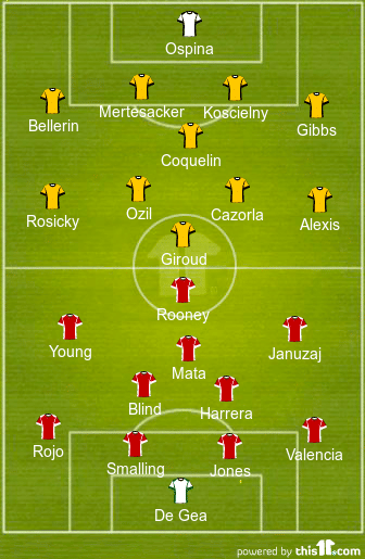 Arsenal are expected to field a 4-1-4-1 formation and might adopt a counter-attacking strategy against which United have consistently shown some vulnerability over the course of this season. The FA Cup holders will look to press their possession happy opponents high up the pitch, not letting them play out from the back.