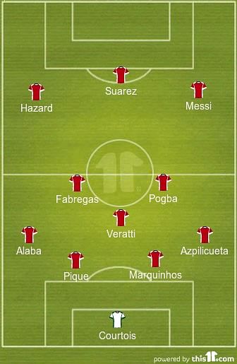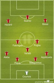 In defence, Fabregas made an obvious choice by selecting his long-time friend Gerard Pique, partnered by Paris Saint-Germain’s centre-back Marquinhos. Bayern Munich’s David Alaba occupies the left back position in the Spaniard's team while the English champions’s ‘Mr. Reliable’ Cesar Azpilicueta is deployed on the right flank.