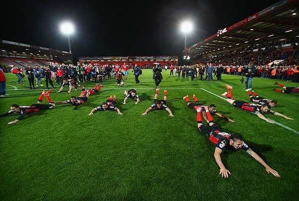 The match, 98 minutes in, was allowed to carry on by the ref, and it was enough time for one more attack. Junior Stanislas headed in from a Charlie Daniels cross and sparked title-winning like celebrations among the fans. The Cherries never looked back from then and had reached 38 points before the start of April.