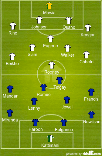 Dempo SC (4-4-1-1): Laxmikant Kattimani, Rowilson Rodrigues, Fulganco Cardozo, Haroon Fakhruddin, Clifford Miranda, Lenny Rodirgues, Jewel Raja, Francis Fernandes, Mandar Rao Desai, Romeo Fernandes, Tolgay Ozbey