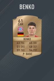 Another 18-year-old in Bayern Munich’s reserve team is Fabian Benko. The attacking midfielder has been rated 61 in FIFA 17 with 65 for his dribbling skills, 63 for pace, 59 for passing, 54 for physicality, and 51 for shooting.