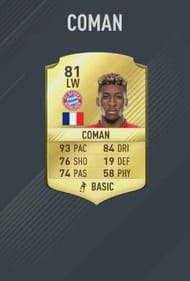 Coman is one of the best young talents available in FIFA 17 and is rated 81. The Frenchman is also one of the fastest players in the game and receives 93 for pace, 84 for dribbling, 76 for shooting, 74 for passing, and 58 for physicality.