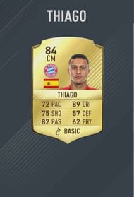 The Spanish midfielder receives an upgrade (from 83 in FIFA 16) in FIFA 17. Thiago’s main attribute is dribbling and the 25-year-old has been rated highly at 89. His decent passing skills have been rated at 82 with 75 for shooting and 72 for pace. Thiago is yet to reach his full potential and his best years are still ahead of him.