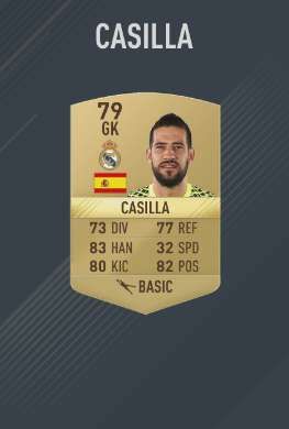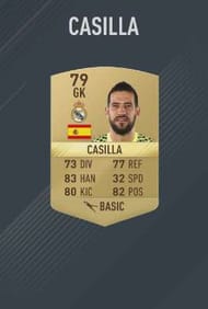 The 29-year-old Spanish Goalkeeper has represented Real Madrid 7 times since his arrival in 2015 and has been rated 79. Casilla’s main attributes are Handling, Positioning, and Kicking for which he has been rated 83, 82, and 80 respectively.