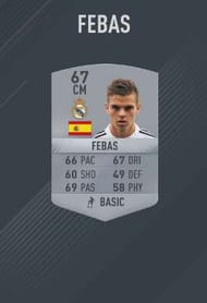 Aleix Febas, who plays for the youth team of Real Madrid, has been rated 67 in FIFA 17. The Spanish midfielder has been rated 69 for passing, 67 for dribbling, 66 for pace, and 60 for shooting.