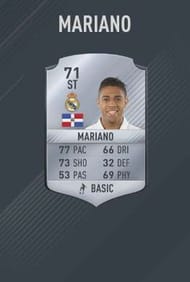 The 23-year-old has made his debut for Real Madrid this year and has been rated an overall of 71. Mariano receives 77 for pace, 73 for shooting, 69 for physicality, 66 for dribbling, and 53 for passing.