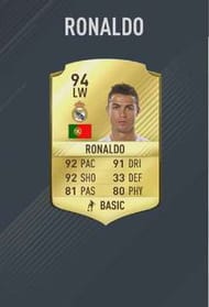 The highest rated player in FIFA 17 is none other than Cristiano Ronaldo with an overall of 94 (from 93 in FIFA 16).