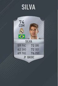 The 23-year-old defensive midfielder has played 8 matches for Real Madrid and is turning out to be one of the best young talents available in FIFA 17. Silva has been rated 76 for dribbling, 72 for defending, 72 for dribbling, 69 for passing, and 62 for shooting.