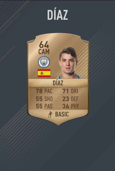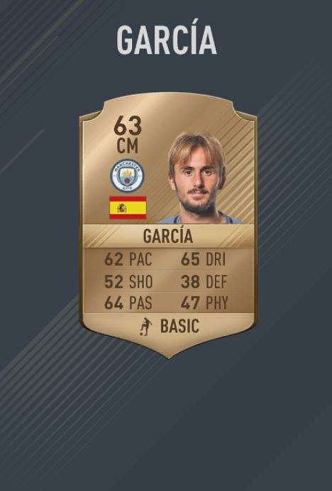 The Spanish midfielder who joined City in 2015 but is yet to appear for the Manchester team is given a rating of 63.