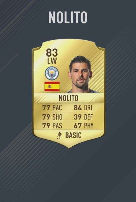 One of the most important signings by Pep Guardiola, Nolito gets a rating of 83 in FIFA 17 and attributed with 79 pace and 84 dribbling skills.