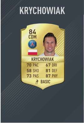 The new signing was brilliant for his former club Sevilla last season, helping them to a second consecutive Europa League as well as earning himself a spot on the competitions team of the season. Krychowiak’s solid form has seen his FIFA 17 rating pegged at 84, which is two up from the previous edition. The Pole’s formidable defensive and physical prowess has been recognized with ratings of 81 and 87 respectively.