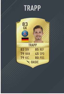 The German goalkeeper was excellent between the sticks for PSG last season and has been rewarded with a FIFA 17 rating of 83, which is one up from the previous game. Trapp’s superb goalkeeping skills, which helped his team rake in four trophies, is reflected in his ratings, with his diving and reflexes rated an 83 and 85 respectively.