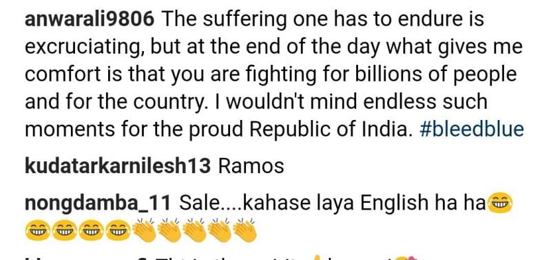 Naorem’s comment on the post was “Sale....kahase laya English ha ha” (Bro where did you bring so much English from) which is a very common joke anybody makes about a person’s English-speaking skills. The Instagram post had come out two days before when there were concerns about Ali’s fitness and his availability for India’s final match against Ghana.