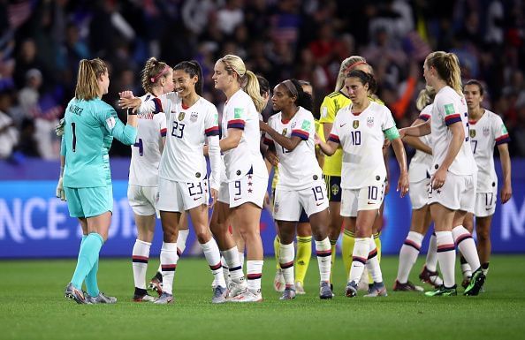 But the US weren't to be denied for too long after the restart, with a Jonna Andersson own-goal, after Heath's shot had struck the Swedish defender, and went past Hedvig Lindahl in goal.