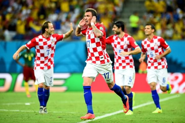 Mario Mandzukic of Croatia celebrates scoring his team's third goal during the 2014 FIFA World Cup Brazil Group A match between Cameroon and Croatia at Arena Amazonia on June 18, 2014 in Manaus, Brazil.