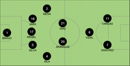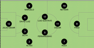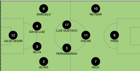 Brazil lined up in their usual 4-2-3-1 formation with Neymar, Oscar and Hulk supporting troubled striker Fred. Chile opted to go with what appeared to be a 3-4-1-2 with Francisco Silva, Gary Medel and Gonzalo Jara forming a three-man defensive net at the back.