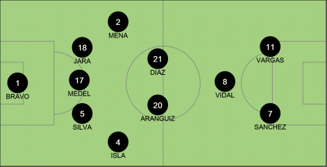 For Chile, Marcelo Diaz in midfield had a brilliant game. His use of the ball was simply superb to watch, always picking out a player in space and being patient with the ball, drawing the Brazilian defence out, before playing the ball forward into Eduardo Vargas and Alexis Sanchez. Along with Charles Aranguiz, he put in a dominant midfield display to leave the Brazilians short-changed for offense.