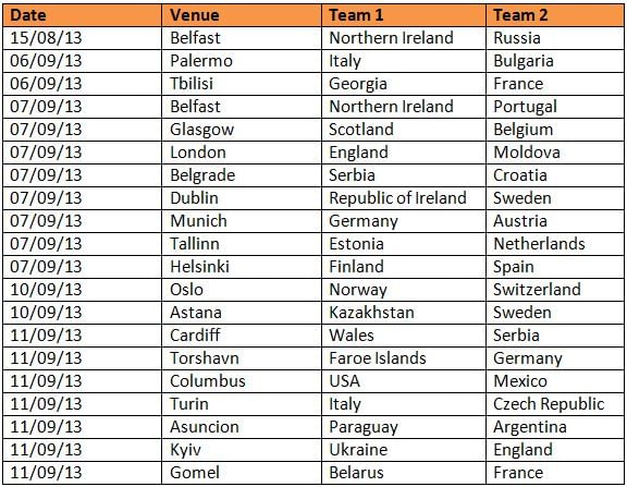 It’s that time of the year again when nations battle it out for a spot in the coveted FIFA World Cup. Taking a break from their club duties, the month of September will feature qualification matches, as players don the national colours to bring pride and prestige to their homelands. The following table features some of the important and noteworthy fixtures from the qualifying stage.