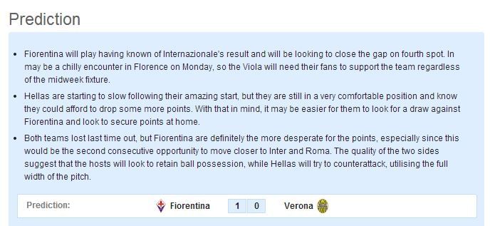 Fiorentina will play having known of Internazionale’s result and will be looking to close the gap on fourth spot. In may be a chilly encounter in Florence on Monday, so the Viola will need their fans to support the team regardless of the midweek fixture.
