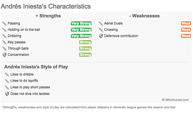 To start reinvestigating past contributions to his team’s phenomenal successes at club and international level is possibly going a bit far, but it does seem clear that this season’s Iniesta is a pale shadow of his most effective former self. There is still plenty of time for a comeback, or to reinvent himself, but the numbers so far this season do not look good