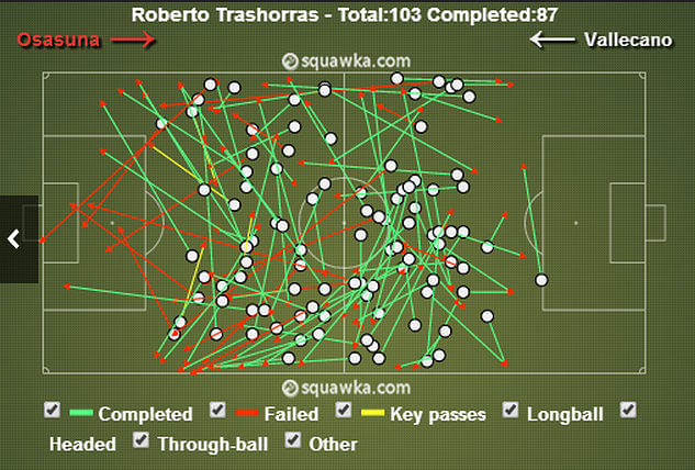 Again this week, Roberto Trashorras led the passing stats in Pamplona.