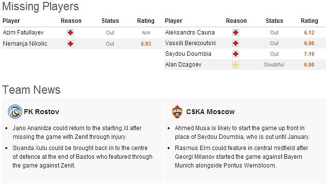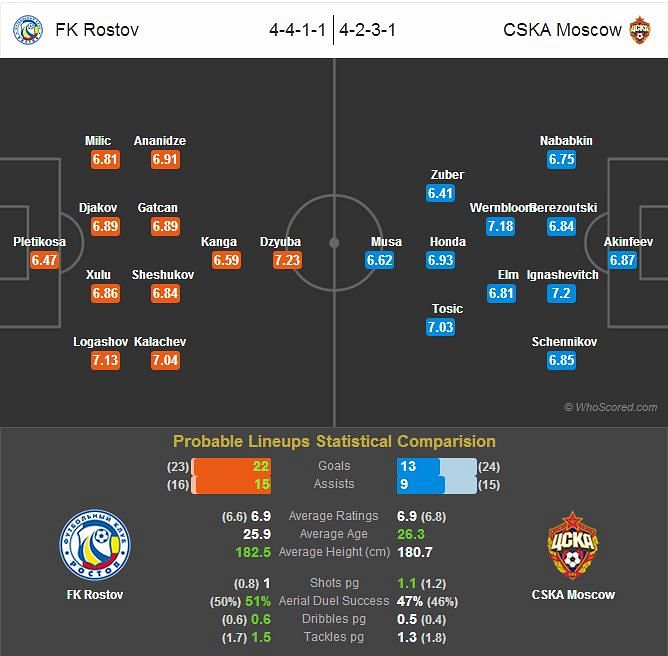 FK Rostov vs CSKA Moscow: Statistical Preview