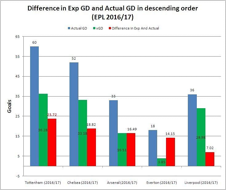 That is to say, they scored more and conceded fewer goals than they should have, by almost 24 goals, the highest by any PL team that season.