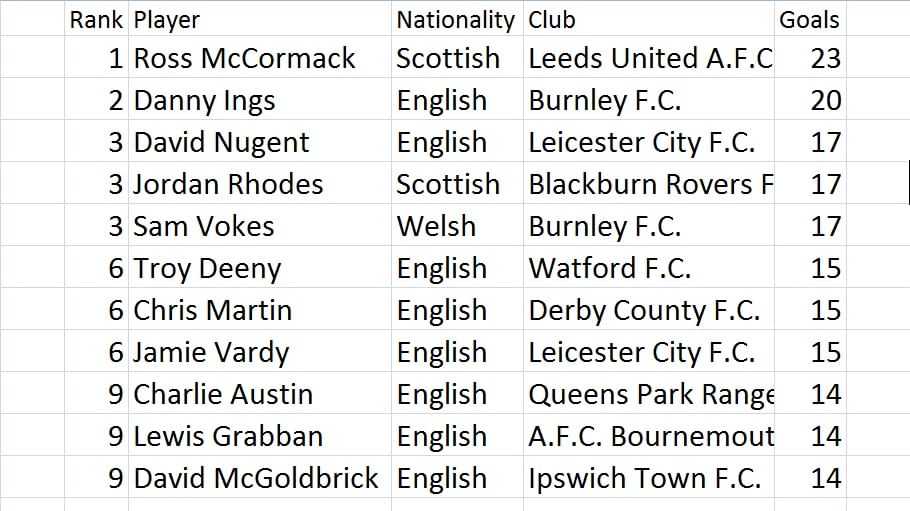 The leading scorers in Football League Championship are as follows (as of 14 March 2014):
