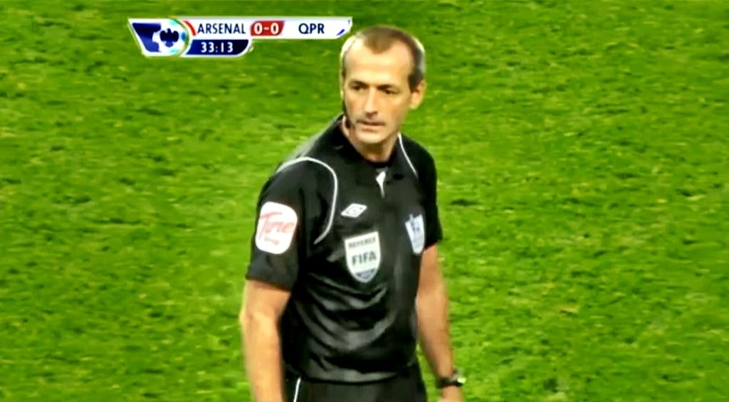 In the 19th minute, Andrey Arshavin and Adel Taraabt were fighting for a loose ball, when the QPR player blatantly pushed his elbow into the Russian’s face, leaving him floored. A red card under standard refereeing rules, but Atkinson surprisingly waved play on and didn’t even give a foul. In the 35th minute, Arsenal had forced a succession of corners and the ball came out to Koscielny who volleyed a shot against Luke Young’s arm. While the shot was fired at great pace and a penalty would have been a contentious decision, there have been similar calls given.