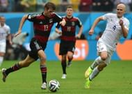 Germany had a few more golden chances to double the lead but were wasteful in front of goal. It turned into a real midfield scrap as the game entered its final leg. The US, who were constantly looking over their shoulders as Portugal took a 2-1 lead against Ghana, found the going tough.
