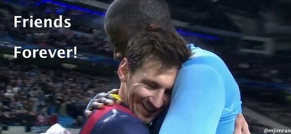 The much awaited Champions league clash between FC Barcelona and Manchester City was no exception. The fans of the game were blessed to see a heart-touching, warm and sweet little moment when Lionel Messi and Yaya Toure went to each other to put the result to one side and hug it out.