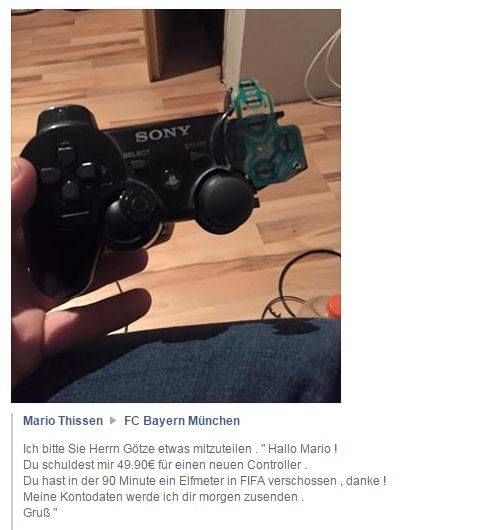 The frustrated gamer, Mario Thissen wrote to Bayern Munich asking for compensation from Mario Gotze for being the reason for breaking the controller. In all respects it seemed like a joke in itself.