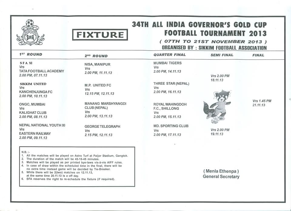 Below is the fixture of the 34th All India Governor’s Gold cup.