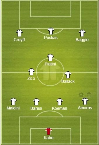 Forwards: Johan Cruyff – Ferenc Puskas – Roberto Baggio