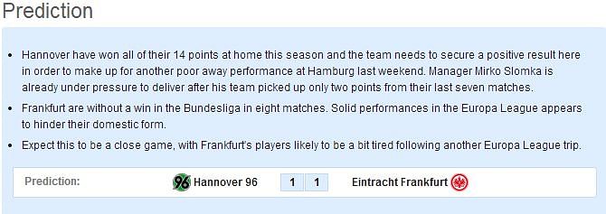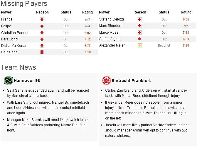 Hannover 96 vs Eintracht Frankfurt: Statistical Preview