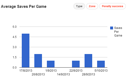 Hart is also managing more average saves per game than last season. Currently he is making 1.43 per match, compared to 1.23 last term, but in this part De Gea’s 1.71 sees him way ahead.