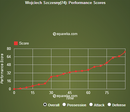 The Poland number one had his best performance of the season in the Gunners 1-0 win over London rivals Tottenham. Szczesny kept his only league clean sheet of the season so far as recorded a performance score of 74, a vast improvement on his opening day score of -70.